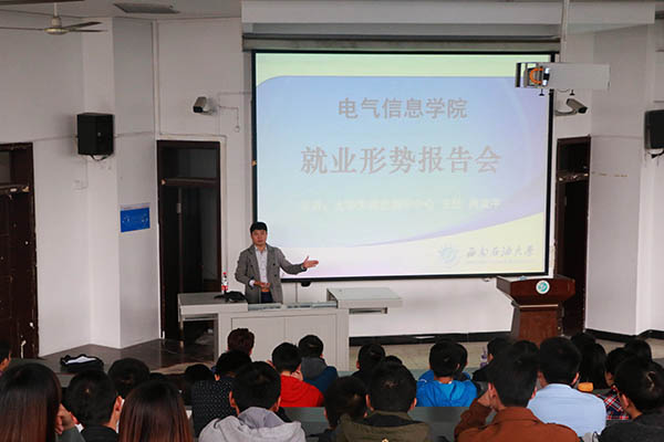为帮助广大学生更好地认识当前业形势,增强就业自信心,电气信息学院于11月3日下午在思学楼C210教室召开了就业形势报告会。就业指导中心主任肖友平老师应邀为学院学生指导,会议由团委书记、毕业班辅导员王彤老师主持。