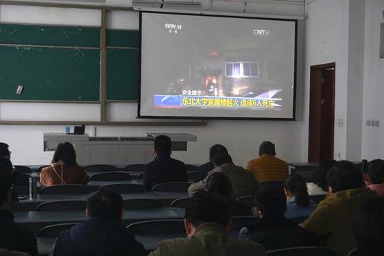 学院教职工共同观看《消防安全警示教育片》场景一
