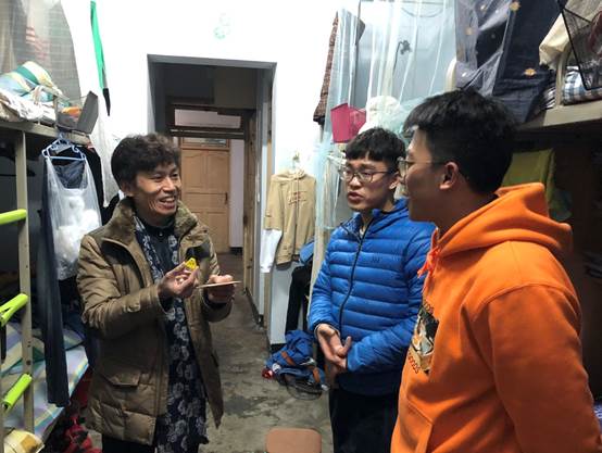 走访过程中,胡书记和辅导员老师逐一来到学生寝室,关切地询问每一位同学的生活状况和学习情况,了解同学们的备考情况,并与同学们进行融洽的交流,叮嘱同学们期末要认真复习、注意身体,加强防盗防火、用电安全意识,传达和讲解学校与学院有关期末和寒假期间的安全工作会议精神。同学们对于学院老师在期末期间走访学生寝室倍感温暖,纷纷表示会努力学习,认真备战期末考试,遵守寝室安全规矩,不辜负学院领导和老师的关心与期望。