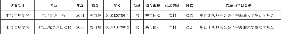 为帮助家庭经济困难学生顺利完成学业,根据《西南石油大学学生资助办法》(西南石大学〔2017〕20号)的相关规定及设助单位的意见,经过严格资格筛选,公平、公正评定,现将学院2017-2018学年中海油大学学生助学金评定结果予以公示。