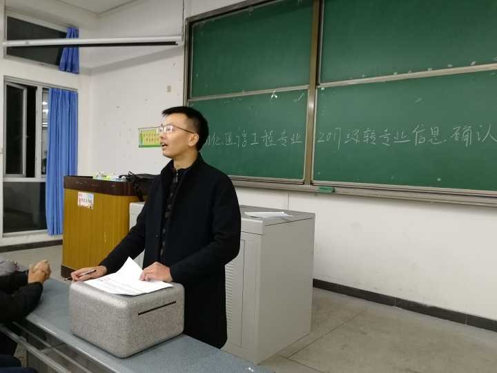12月19日晚,电气信息学院辅导员陈奕宇老师在明理楼A108对自动化和通信工程2017级有意转专业学生进行最后的信息确认。本次会议旨在保证所有填写转专业网上报名的学生所填信息无误。