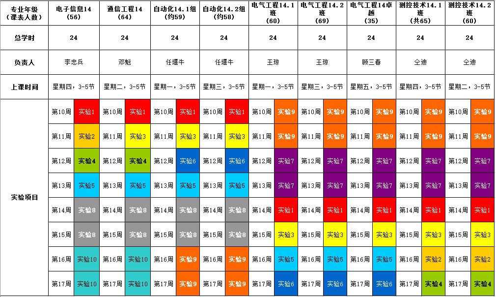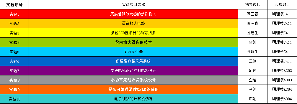 2016秋季学期集成电路应用实验课程安排