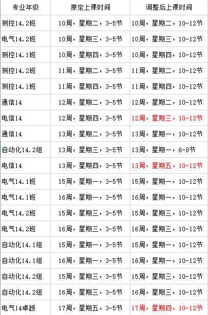由于受机械制造实训停课影响,个别时段的授课按下表进行调整
