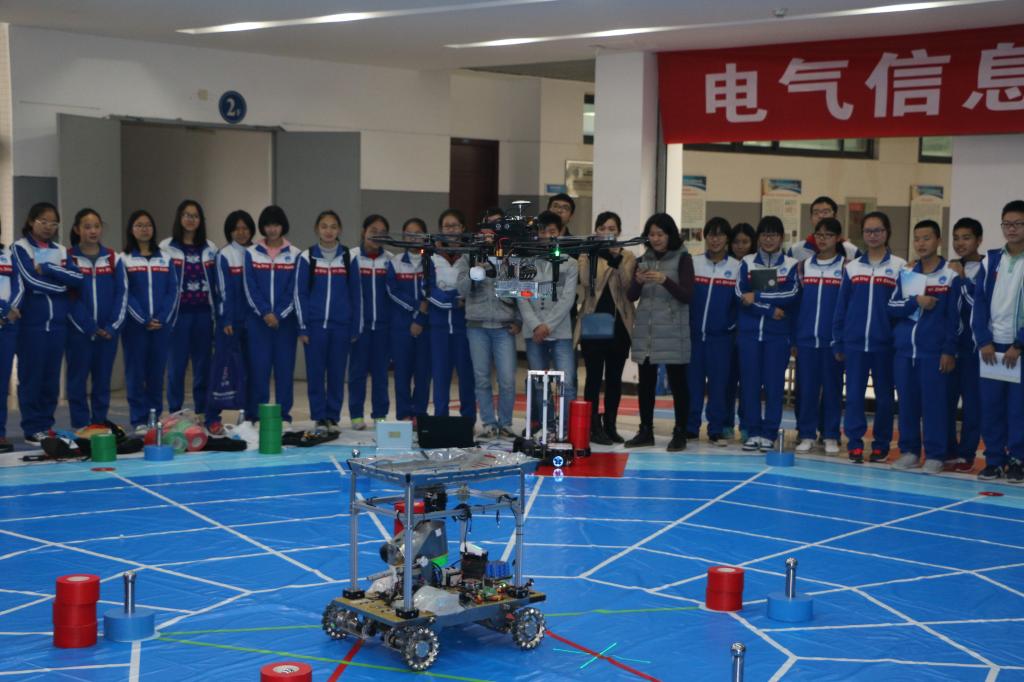 2016年11月15日下午,新都一中师生来我院参观。在学院党委副书记胡俊老师的热情接待下,新都一中一行人来到我院实验室参观。现场,靳涛老师为大家带来了声情并茂的解说,我院铁人战队的同学们展示了即将参加四川省大学生机器人大赛的机器人。完美地表演了“飞行投弹”、“射击”、“搬竹子”等技能,博得了同学老师们热烈的掌声。同学们对机器人赞不绝口,有迫切咨询机器人工作原理,希望学得科学知识的;有拿着相机记录机器人精彩表演,回校后慢慢体会的。随后,靳涛老师带领同学们进入了实验室,感受学长学姐的学习科研氛围。靳老师耐心的为大家介绍了实验室内的科研项目和实验仪器,希望同学们能在将来的大学学习中找准自己的目标,准确定位。